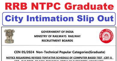 | Recruitment Type | NTPC UG City Intimation Slip |