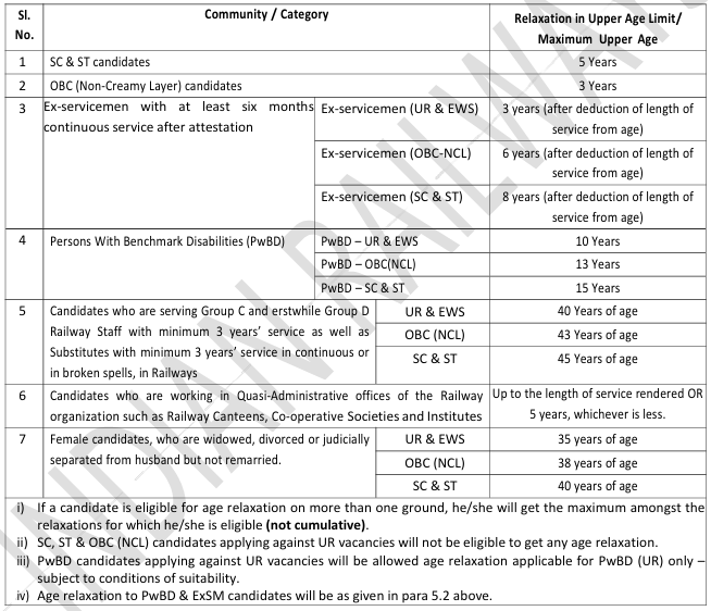Age Relaxation in upper age limit /maximum upper age for the following categories / communities in the table below are applicable subject to submission of requisite certificates.