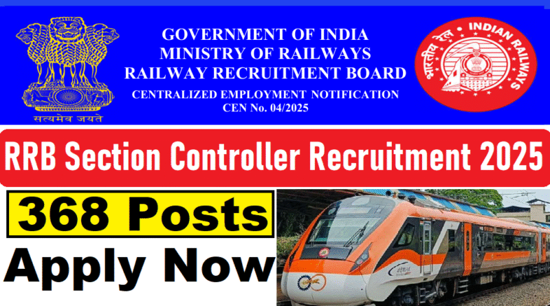 RRB Section Controller Recruitment 2025 : Railway Recruitment Board (RRB) की ओर से 368 Posts पर Recruitment निकली है जिसका Online form 15/09/2025 से शुरू है | RRB Section Controller Recruitment 2025 Online form 14/10/2025 तक भरा जायेगा |Graduate Pass in various candidates RRB Section Controller Recruitment 2025 online form भर सकता है | Interested and eligible candidates RRB Section Controller Recruitment 2025 form भर सकते हैं | RRB Section Controller Recruitment Full Notification निचे दिया गया हैI RRB Section Controller Recruitment Apply Link निचे दिया गया है I