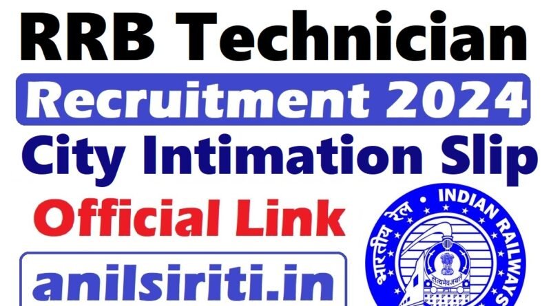 RRB Technician City Intimation Slip 2024: Railway Recruitment Board की ओर से Technician Grade I और RRB Technician Grade III Posts पर 14298 Seats पर Recruitment निकली थी | RRB Technician Recruitment 2024 CBT Exam Date भी जारी किया जा चूका है | RRB Technician Recruitment 2024 CBT Exam 19.12.2024 to 29.12.2024 के बीच होने वाला है | RRB Technician III Recruitment 2024 के लिए Application Status Link जारी कर दिया गया है | RRB Technician Application Status 2024 Official Link निचे दी गई है | RRB Technician CBT Exam के लिए City Intimation Slip 10-12-2024 को जारी किया जायेगा | RRB Technician CBT Exam City Intimation 2024 official link निचे दी गई है | आज RRB Technician I CBT Exam City Intimation Slip जारी कर दिया गया है | RRB Technician III CBT Exam City Intimation Slip कुछ दिन में जारी किया जायेगा | RRB Technician III City Intimation Slip की जानकारी Anil Sir ITI Telegram Channel पर दी जाएगी |