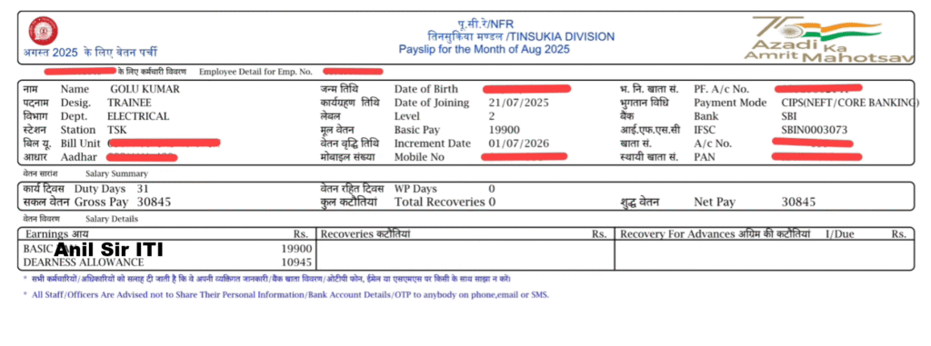 RRB Technician III Salary 2025: Railway Recrutment Board की ओर से ITI Pass Candidates के लिए Technician Grade III की Recruitment आती है | 2025 में भी RRB Technician III Recruitment निकली थी जिसके Exam का इंतजार candidates कर रहे हैं | RRB Technician III Recruitment 2025 की तैयारी कर रहे हैं तो Anil Sir ITI App download करके Mock Test, Practice Test दें सकते हैं | RRB Technician III की 2024 में भी Recruitment निकली थी जिसका Joining काफी सारे Candidates के हो चुके है | एक Candidates का RRB Technician में Joining 21-07-2025 को हुई थी जिसके Railway में काम करते हुए 1 महिना से अधिक हो गया | आज उसकी Railway Technician की Salary Slip आई जिसमे Railway Technician Salary की Actual Salary देखने को मिल रहा है |