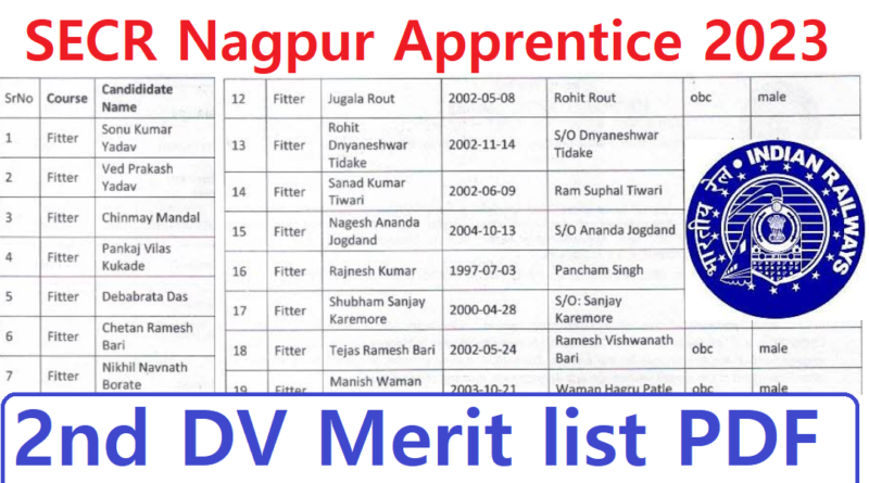 SECR Nagpur Apprentice 2nd DV Date 2023