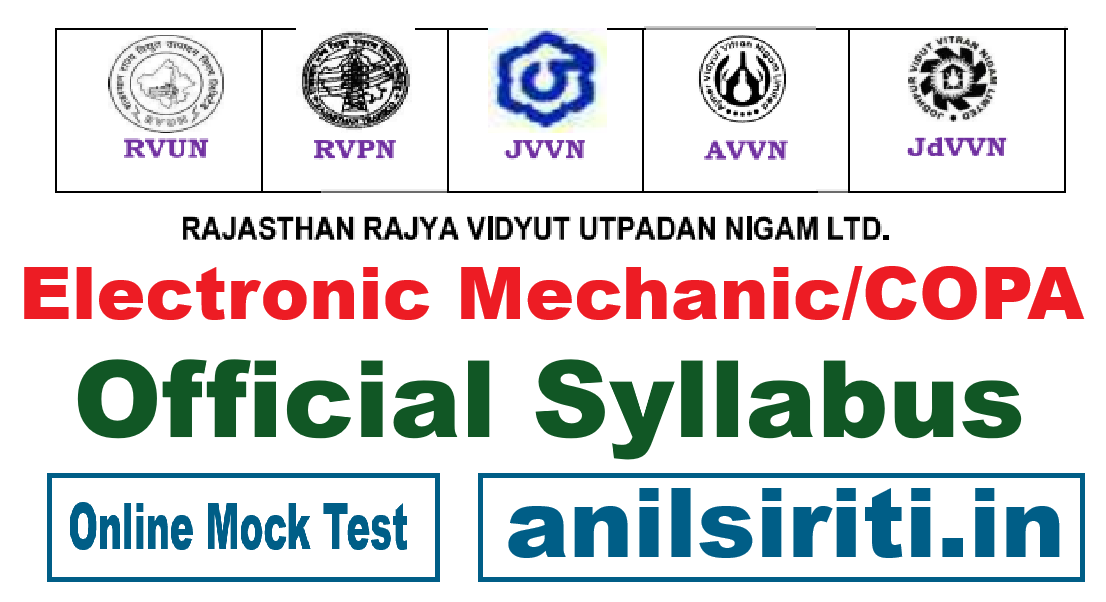 RRVUNL Electronic Mechanic COPA Technician III Syllabus 2025: RRVUNL (Rajasthan Rajya Vidhytu Utpadan Nigam Ltd) की ओर से ITI Pass candidates के लिए Electrician, FItter, Electronic Mechanic, COPA etc trade के लिए Technician III Recruitment आई थी जिसका Online form 10-09-2025 तक भरा गया था |RRVUNL Technician III Recruitment Exam 24th Nov 2025 – 27th Nov 2025 तक होने वाला है | RRVUNL Electronic Mechnaic COPA Technician III Syllabus निचे दिया गया है | RRVUNL Electronic Mechanic Mock Test निचे दिया हुआ है | RRVUNL Technician Exam Update के लिए Anil Sir ITI Telegram channel जरुर join करके रखें |