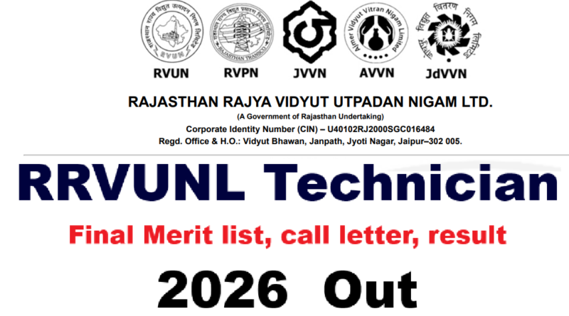 RRVUNL Technician Final Merit list, call letter, result 2026 Out