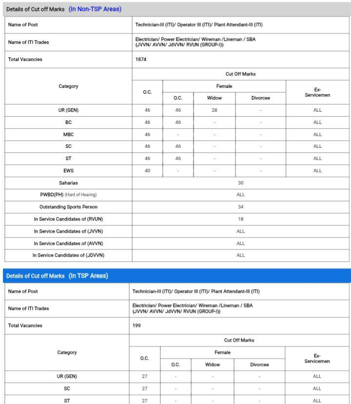 | 4 | Electrician/Power Electrician/ Wireman/Lineman/SBA (JVVN/AVVN/JdVVN/RVUN (GROUP-I)} | Click Here | Click Here |