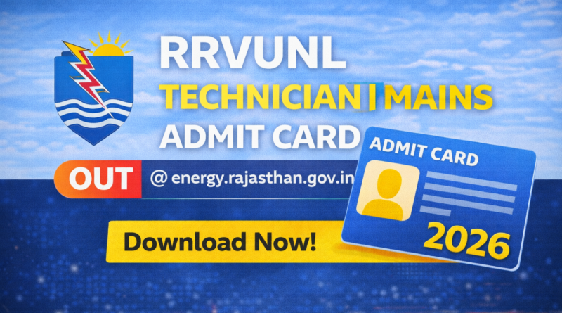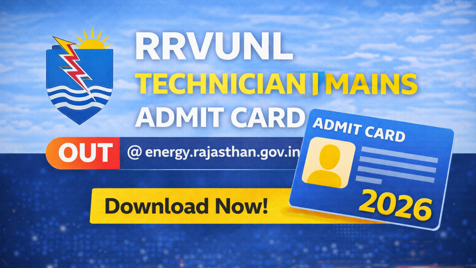 RRVUNL Technician Mains Admit Card 2026 Out: RRVUNL Technician Mains Admit Card 2026 has been released on the official website. Candidates who have qualified the preliminary exam can now download their Mains Admit Card online using their registration number and password. The admit card contains important details such as exam date, exam center, reporting time and important instructions.