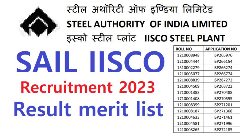 SAIL IISCO Steel Plant Recruitment Result Out 2023, Download Merit list pdf 2023