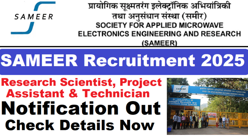 SAMEER Recruitment 2025 Full Notification Out, Scientist, Assistant & Project Technician Posts Latest Vacancy 2025