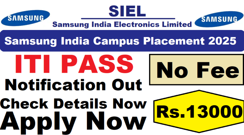 Samsung India Campus Placement 2025, ITI Pass Vacancy 2025