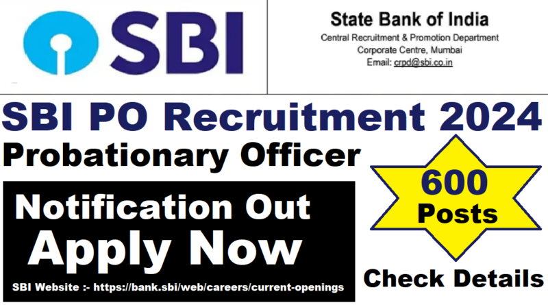 SBI PO Recruitment 2024 : State Bank Of India (SBI) की ओर से 600 Posts पर Recruitment निकली है जिसका Online form 27/12/2024 से शुरू है | SBI PO Recruitment 2024 Online form 16/01/2025 तक भरा जायेगा | Graduate Pass in various trade candidates SBI PO Recruitment online form भर सकता है |Interested and eligible candidates SBI PO Recruitment form भर सकते हैं |SBI PO Recruitment 2024 Full Notification निचे दिया गया है |SBI PO Recruitment 2024 Apply Link निचे दिया गया है |