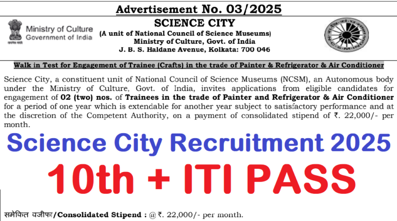 Science City Recruitment 2025, 10th + ITI Pass Latest Vacancy 2025, Apply Now