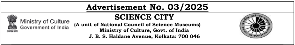 Science City Recruitment 2025 : Science City Kolkata की ओर से 02 Posts पर Recruitment निकली है जिसका Interview Date19 May 20254 , सुबह 09:00 बजे है|10th + ITI Pass in various candidates Offline Walk-In-Test में शामिल हो सकते हैI आपकी Walk-In-Test Location – Science City Seminar Hall, J.B.S. Haldane Avenue, Kolkata – 700046 रहने वाला हैI Science City Walk-In-Test 2025 Full Notification निचे दिया गया है |