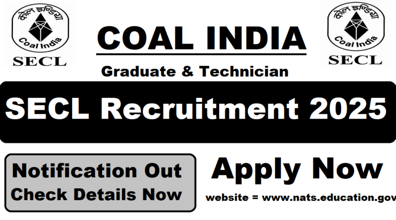 SECL Apprentice Recruitment 2025, Technician & Graduate 800 Posts Apply Now, 10/02/2025 Last Date