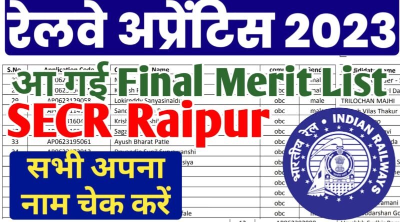 SECR Raipur Apprentice Final merit list 2023 PDF Download Link