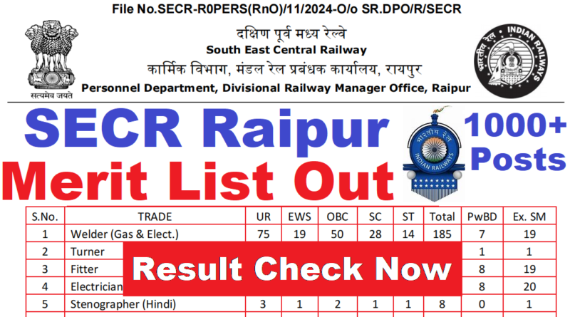 - SECR Raipur Apprentice Joining Merit list 02-08-2025 को जारी कर दिया गया है |