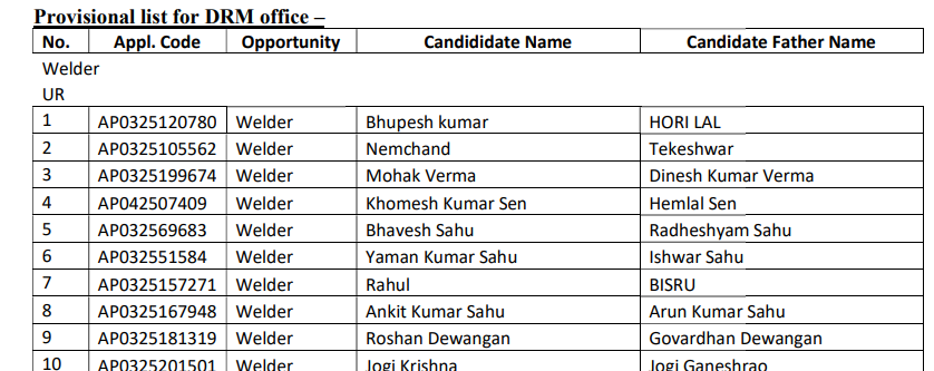 - SECR Raipur Apprentice DV merit List 19/04/2025 तक जारी हो गया था I
