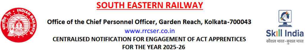 SER Railway Apprentice Recruitment 2025, ITI Pass Latest Vacancy 2025, 17/12/2025 Last Date