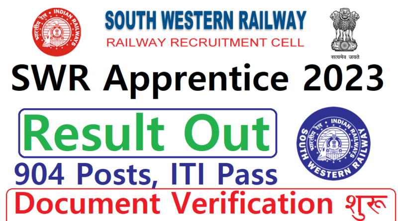 South Western Railway Apprentice Result Out 2023: RRC SWR की ओर से ITI Pass Candidates के लिए 904 Posts पर Apprentice निकली है जिसका Online form 02-08-2023 तक भरा गया था | RRC SWR Apprentice का Result out हो गई है | RRC SWR Apprentice में Selected Candidates को Mail भेजा गया है | RRC SWR Apprentice का Document Verification के लिए Selected candidates को mail भेज दिया गया है |