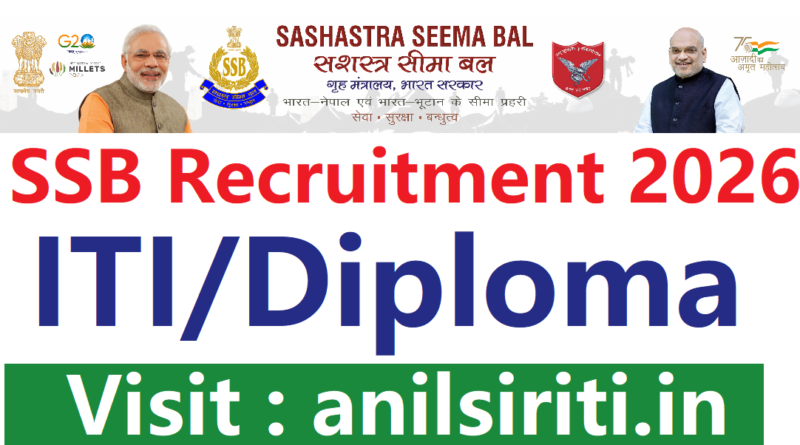 🛡️ SSB Constable Tradesman & Driver Recruitment 2026 — 827 Posts  |  📅 Apply: 21 March से 20 April 2026  |  💰 Fee: ₹100 (SC/ST Free)  |  🎓 10th Pass Eligible  |  🖥️ ssb.gov.in  |  🌐 anilsiriti.in  |
