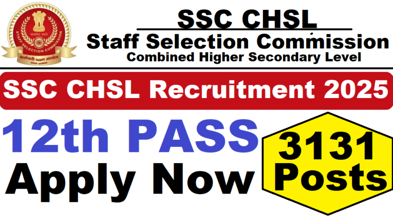 SSC CHSL Recruitment 2025, 3131 Posts, 12th Pass Latest Vacancy 2025, 18/07/2025 Last Date