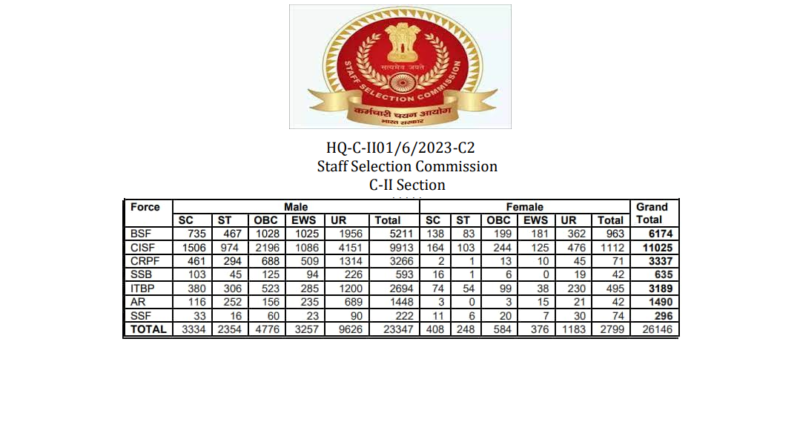 SSC GD New Recruitment 2023: The Staff Selection Commission (SSC) released the SSC GD Constable Notification 2023 on 24 November 2023. As per the SSC’s Exam Calendar, the SSC GD 2023 Notification has been released on 24 November 2023. SSC has revised its Exam Calendar which has now included the SSC GD Constable Recruitment 2023. The SSC GD 2024 Notification is scheduled to be released on 24 November 2023 for the recruitment of around 26146 vacancies. The SSC has also released the Constable GD Exam Date. The SSC GD Constable Exam will be held on 20-29 February and 1-12 March 2024.