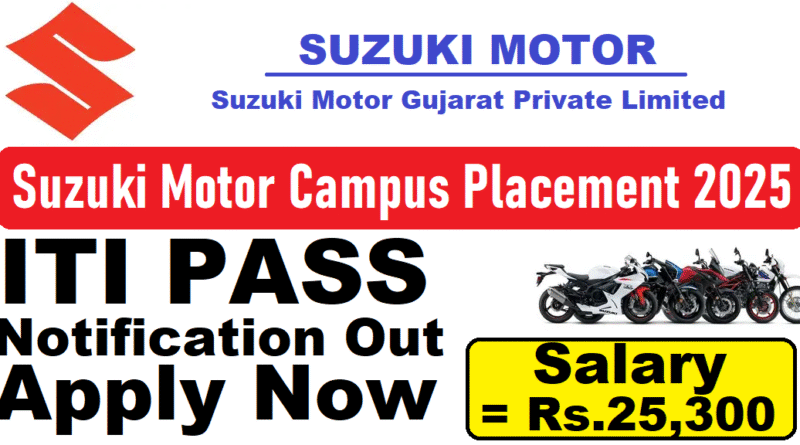 Suzuki Motor Campus Placement 2025, ITI Pass Latest Vacancy 2025