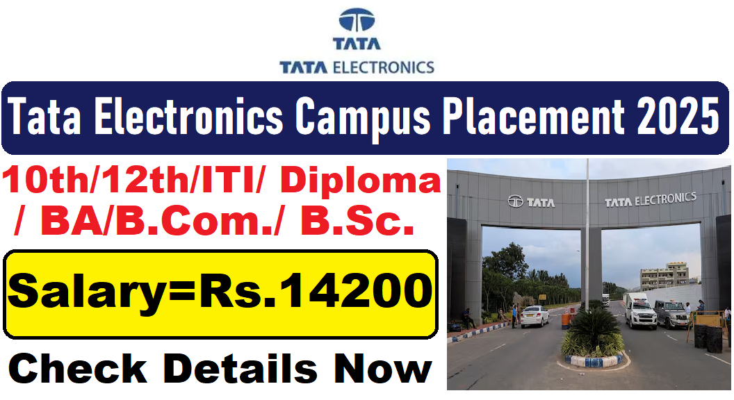 Tata Electronics Campus Placement 2025 : Tata Electronics की ओर से Technician Post पर Campus Placement निकली है जिसकाCampus Date नहीं बताया गया है नीचे Company का Contact Number दिया गया है उसपर Call करके Campus Venue पर जाए, Company का Official Call Time 10:00 Am to 05:00 Pm सुबह 09:30 बजे है|10th Or 12th Or ITI Or Diploma Or BA Or B.Com. Or B.Sc Pass in various candidates Offline Campus Placement में शामिल हो सकते हैI आपकी Campus Placement Location – Satpura College of Engineering, Polytechnic and ITI Satpura Campus, Lalbarra Road, Garra, Balaghat रहने वाला हैI Tata Electronics Campus Placement 2025 Full Notification निचे दिया गया है |