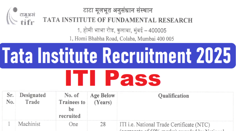 Tata Institute Recruitment 2025, ITI Pass Latest Vacancy 2025