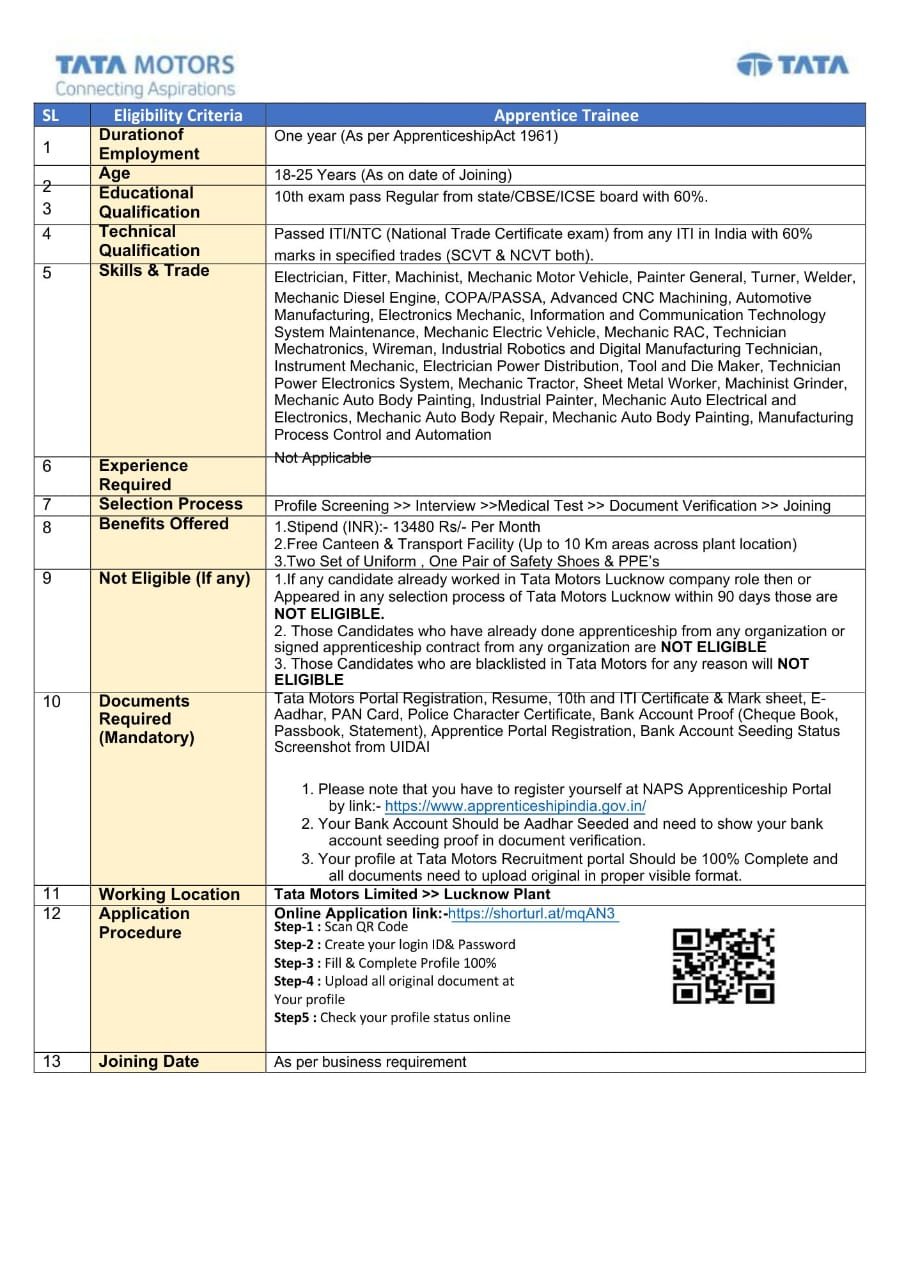 Eligible Trades : Electrician, Fitter, Machinist, Mechanic Motor Vehicle, Painter General, Turner, Welder. Mechanic Diesel Engine, COPA/PASSA, Advanced CNC Machining, Automotive Manufacturing, Electronics Mechanic, Information and Communication Technology System Maintenance, Mechanic Electric Vehicle, Mechanic RAC, Technician Mechatronics, Wireman, Industrial Robotics and Digital Manufacturing Technician, Instrument Mechanic, Electrician Power Distribution, Tool and Die Maker, Technician Power Electronics System, Mechanic Tractor, Sheet Metal Worker, Machinist Grinder, Mechanic Auto Body Painting, Industrial Painter, Mechanic Auto Electrical and Electronics, Mechanic Auto Body Repair, Mechanic Auto Body Painting, Manufacturing Process Control and Automation.
