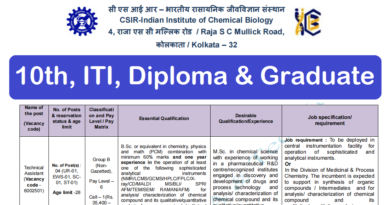 | Technical Assistant | A Diploma in Civil Engineering from any Institute approved by All India Council for Technical Education |