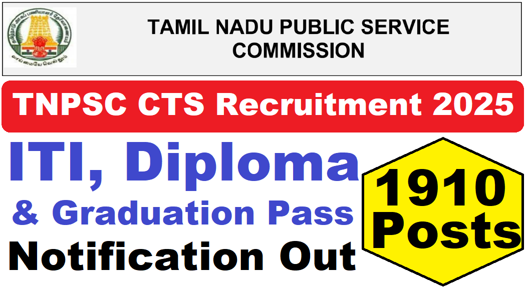 TNPSC CTS Recruitment 2025, 1910 Posts, ITI, Diploma & Graduate Pass Latest vacancy 2025, 12/07/2025 Last Date