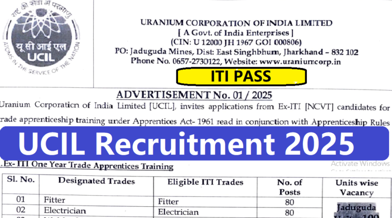 UCIL Corporation Recruitment 2025 : Uranium Corporation Of India Limited (UCIL) की ओर से 228 Posts पर Recruitment निकली है जिसका Online form 03/01/2025 से शुरू है | UCIL Recruitment 2025 Online form 02/02/2025 तक भरा जायेगा |ITI Pass in various trade candidates UCIL Recruitment online form भर सकता है | Interested and eligible candidates UCIL Recruitment form भर सकते हैं |UCIL Recruitment Full Notification निचे दिया गया हैI UCIL Recruitment Apply Link निचे दिया गया है I