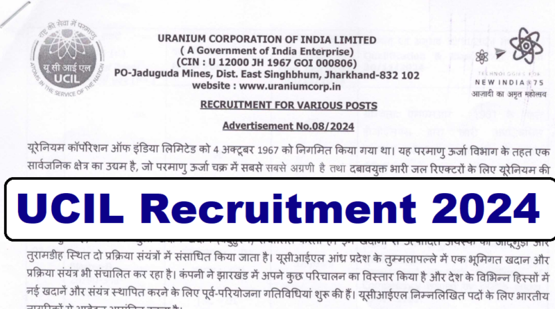 Uranium Corporation of India Limited Recruitment Read Notification 2024