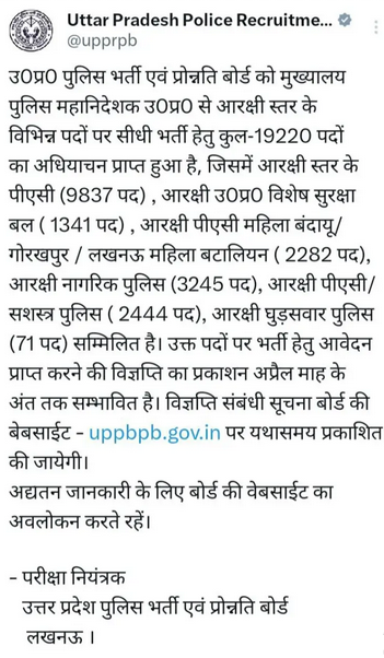 UP police constable vacancy 2025 : Uttar Pradesh Police Recruitment & Promotion Board की ओर से 19220 Posts पर Recruitment निकली है , जिसका Notification जारी हो चूका है ,UP police constable Online form जल्द शुरू किया जायेगा है | 10th & 12th Pass in various candidates UP police constable Recruitment 2025 online form भर सकता है | Interested and eligible candidates UP police constable Recruitment 2025 form भर सकते हैं | UP police constable Recruitment Full Notification निचे दिया गया हैI UP police constable Recruitment Apply Link निचे दिया गया है I