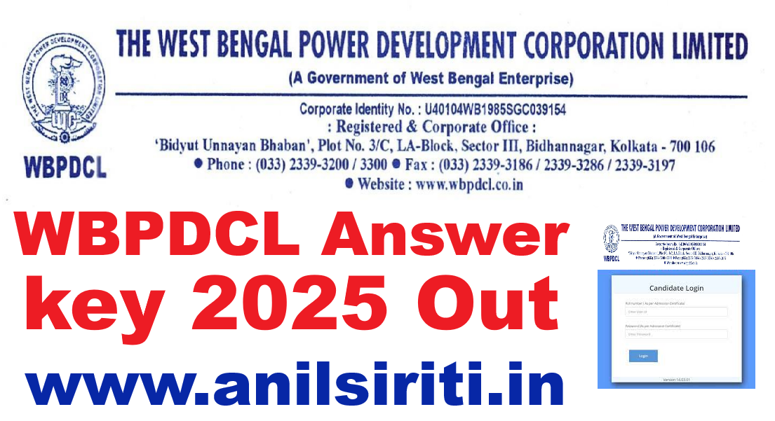 WBPDCL Answer key 2025 Out @wbpdcl.co.in