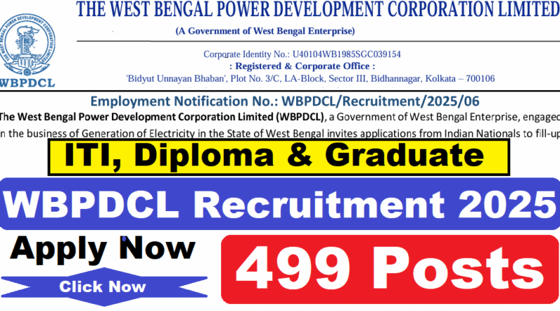 WBPDCL Recruitment 2025 : The West Bengal Power Development Corporation Limited (WBPDCL) की ओर से 499 Posts पर Recruitment निकली है जिसका Online form 22/09/2025 से शुरू है | WBPDCL Recruitment 2025 Online form 13/10/2025 तक भरा जायेगा | ITI, Diploma & Graduate Pass in various candidates WBPDCL Recruitment 2025 online form भर सकता है | Interested and eligible candidates WBPDCL Recruitment 2025 form भर सकते हैं | WBPDCL Recruitment Full Notification निचे दिया गया हैI WBPDCL Recruitment Apply Link निचे दिया गया है I