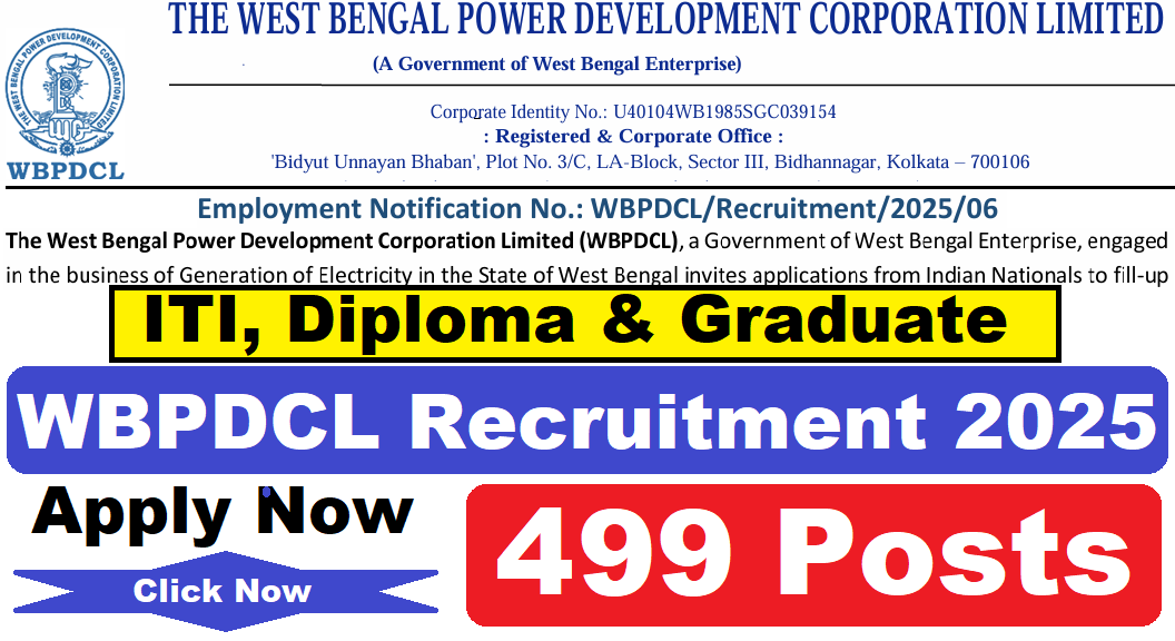 WBPDCL Recruitment 2025 : The West Bengal Power Development Corporation Limited (WBPDCL) की ओर से 499 Posts पर Recruitment निकली है जिसका Online form 22/09/2025 से शुरू है | WBPDCL Recruitment 2025 Online form 13/10/2025 तक भरा जायेगा | ITI, Diploma & Graduate Pass in various candidates WBPDCL Recruitment 2025 online form भर सकता है | Interested and eligible candidates WBPDCL Recruitment 2025 form भर सकते हैं | WBPDCL Recruitment Full Notification निचे दिया गया हैI WBPDCL Recruitment Apply Link निचे दिया गया है I