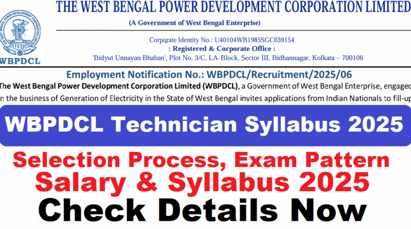 WBPDCL Technician Syllabus 2025, Selection Process, Exam Pattern, Check Details Now