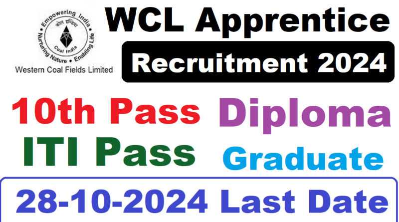WCL Apprentice Recruitment 2024: Western Coalfields Limited की ओर से ITI, Diploma, Graduate Candidates के लिए Apprentice निकली है जिसका Online form15-10-2024 से भरना शुरू होगा | WCL Apprentice Recruitment 2023 Online form 28-10-2024 तक भरा जायेगा | WCL Apprentice Recruitment Online form 2024 भरने के पहले निचे दिए गये जानकारी को प्राप्त करें | WCL Apprentice 2024 notification | WCL Apprentice 2024 Registration Link निचे दी गई है | WCL Apprentice 2024 Apply Online form last date के इंतजार किये बगैर ही Apply करें |