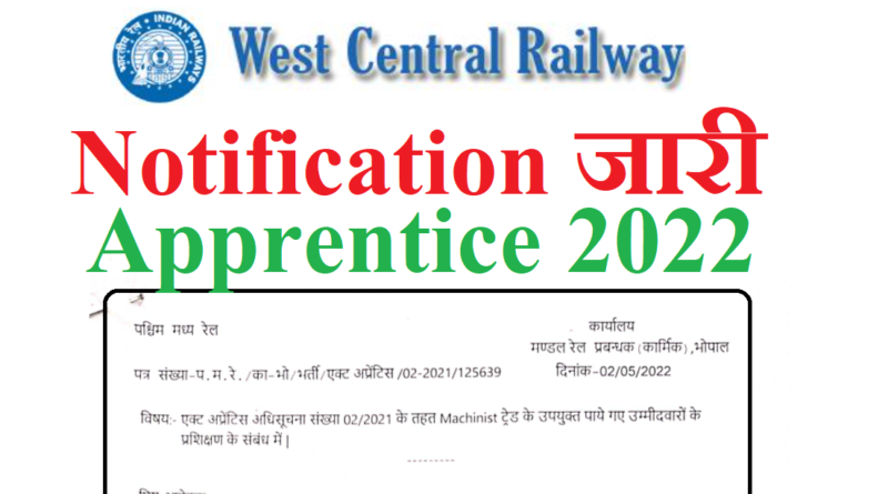 WCR (West Central Railway) Apprentice 02/2021 के तहत Machinist Trade के उपयुक्त पाये गए उम्मीदवारों के प्रशिक्षण के संबंध में |