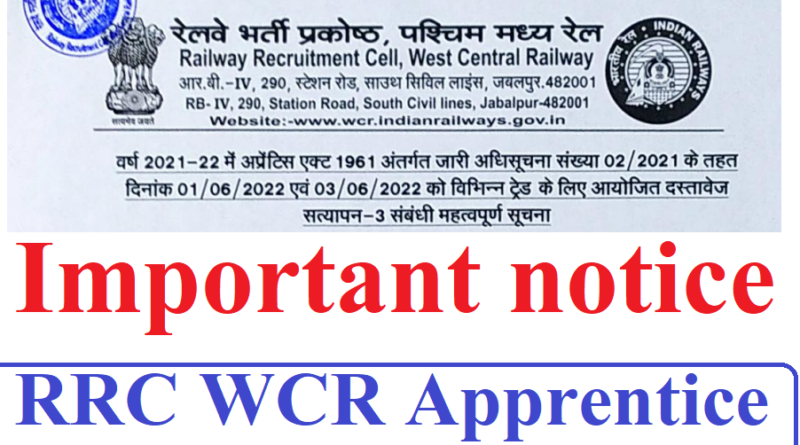 Railway Recruitment Cell West Central Railway Jabalpur Apprentice 3rd merit list का document verification 01-06-2022 से 03-06-2022 तक था जिसमे विभिन्न ट्रेड के आईटीआई उम्मीदवारों को दस्तावेज के सत्यापन के इन्हें प्रशिक्षण हेतु उपयुक्त पाए गयें हैं एवं मंडल / कारखाना आवंटित किया गया है उनका विवरण निम्न pdf में उपलब्ध है |