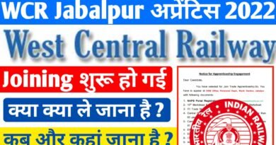 Railway Recruitment Cell West Central Railway Apprentice 2022 : West Central Railway के Electric Loco Shed, Tuglakabad के अधीन प्रशिक्षणरत, जिन प्रशिक्षु की प्रशिक्षण दिनांक 17.11.2022 को पूर्ण हो रहे हैं , उन सभी Trades की Practical Exam Date 10-11-2022 समय 10:00 से 13:00 तक लिया जायेगा | अतः सभी प्रशिक्षुओं को अवगत किया जाता है कि उपरोक्त दिनांक को शेड में अवश्य उपस्थित हो |