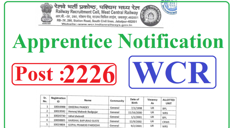 West Central Railway Apprentice Notification, 2nd Joining Merit list 2022