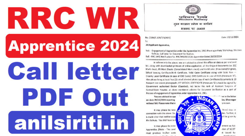 - RRC WR Bhavnagar Para Apprentice Call Letter Mail के माध्यम से सूचना दी गई है |
