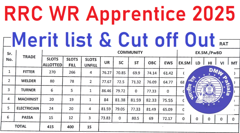 Western Railway Apprentice Merit list and Cut off 2024-25 Out: Western Railway की ओर से 5066 Posts पर Apprentice निकली थी जिसका Online 29-10-2024 तक भरे गये थे | RRC WR Apprentice Merit list 2024 जारी होना शुरू हो चूका है | Western Railway Apprentice 2024 Document verification 2024-25 की जानकारी Mail पर भेजी जा रही है | आज WR Dahod Apprentice Merit list selected candidates को mail आया है |