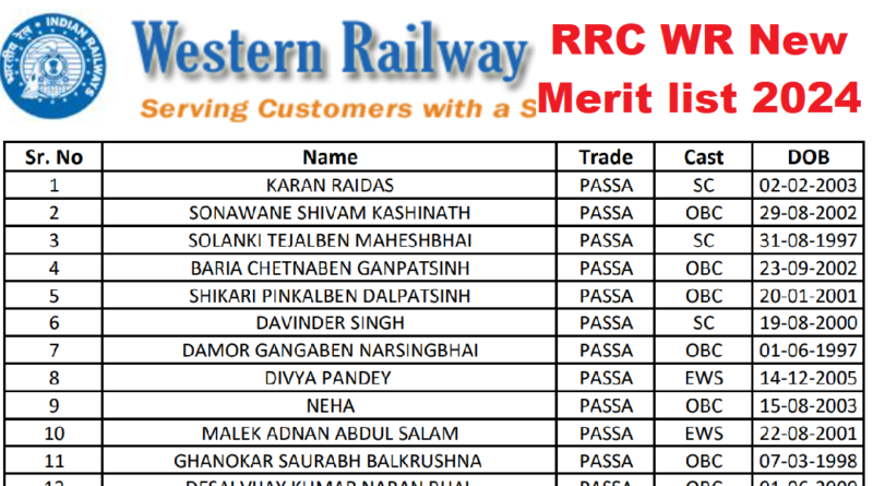 Western Railway Apprentice New Merit list released 2024, ITI Pass 3624 Posts Apprentice