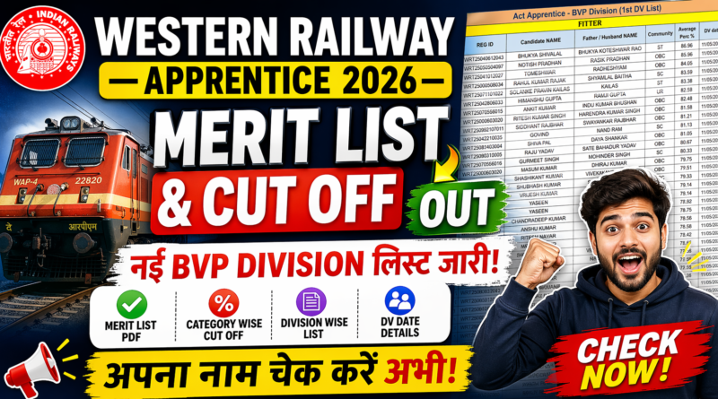 Western Railway BVP Apprentice Merit List Cut Off 2026 | Bhavnagar Para DV Date