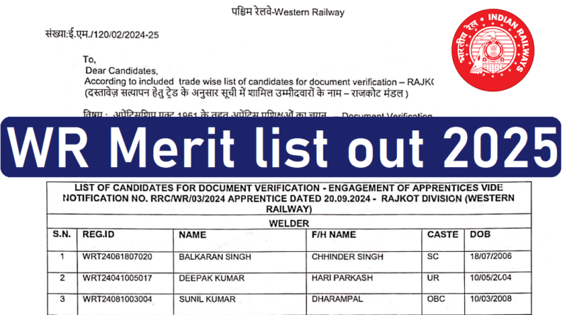 Western Railway Rajkot Apprentice Merit list 2025 Out