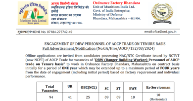 - SC / ST / OBC apprentice candidates should bring two photo copies of caste certificate in the prescribed proforma issued by the Government of India.