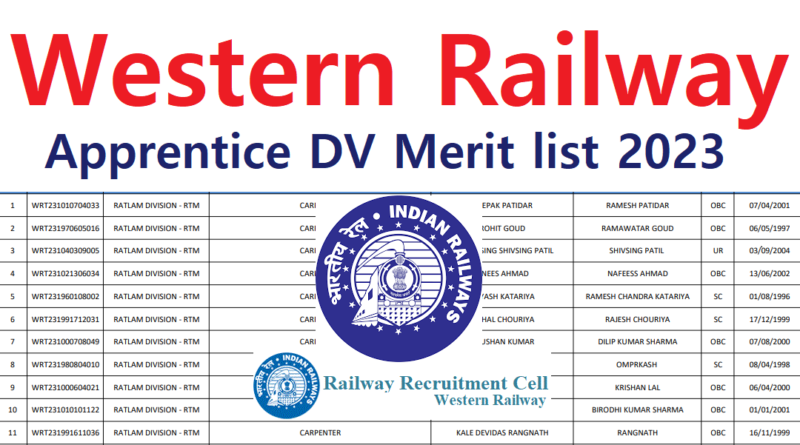 RRC WR Ratlma Apprentice DV Merit list Sample 2023